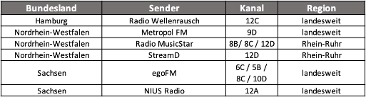 In Lübeck und auf Fehmarn verbessert sich der DAB+ Empfang. Im Rahmen der Digitalisierungsstrategie unter dem Motto #SHhoertdigital sollen an mehreren Standorten neue Sendeanlagen aufgeschaltet werden. Laut Angaben der Bundesnetzagentur soll das Senderangebot künftig sowohl von Puttgarden/Fehmarn als auch vom Senderstandort Bad Segeberg aus ausgestrahlt werden.
